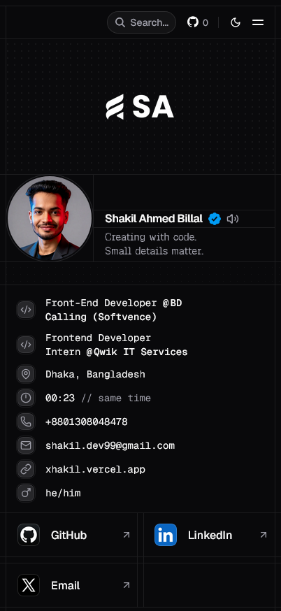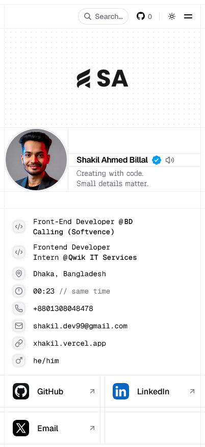 Every line of code tells a story. For me, Shakil Ahmed Billal, my personal site at xhakil.vercel.app isn't just a collection of pixels and API calls—it’s the digital embodiment of my journey as a developer. Based in the vibrant heart of Dhaka, Bangladesh, I’ve always believed that: